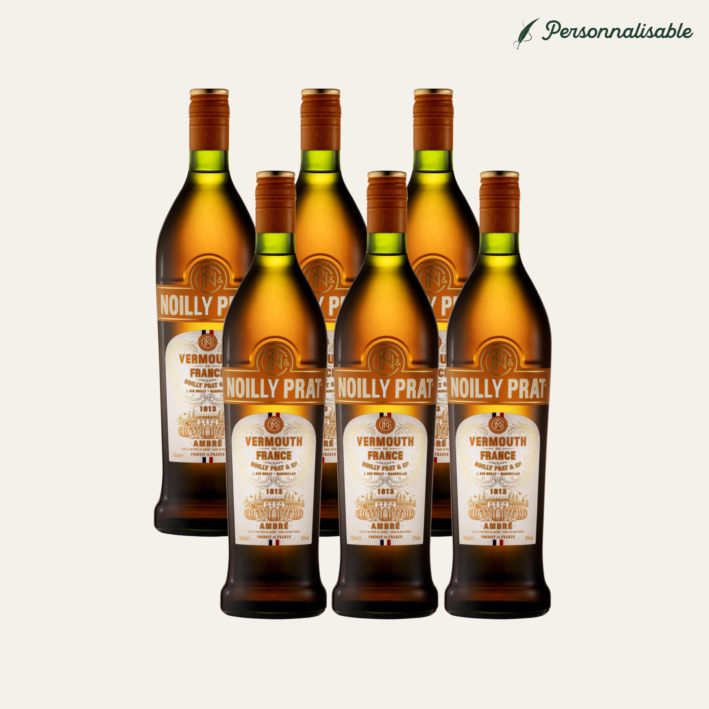 Dans ce kit, vous retrouverez 6 bouteilles de Noilly Prat Ambré.